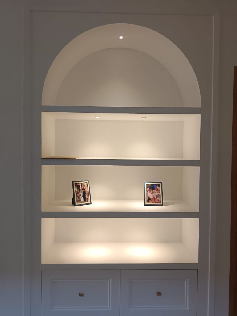 our focus was on clean design, perfect balance and practical use of space. We studied each wall and corner to understand how storage, lighting, and display could work together in a simple and elegant way. The goal was to create joinery that looks calm, rich, and timeless, without making the space feel heavy.